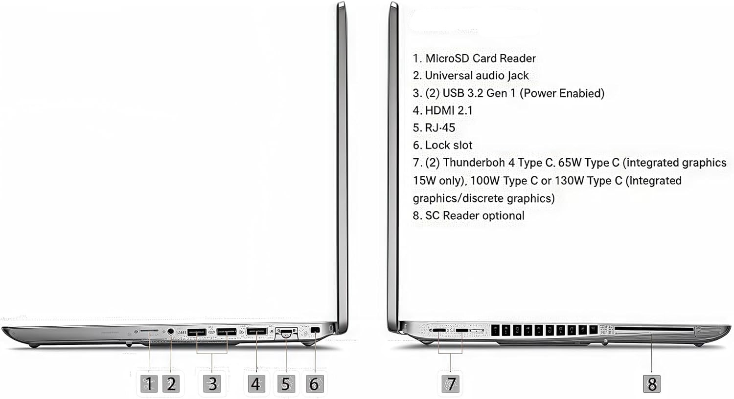 | Ports | 🔗 1x Thunderbolt 3, 3x USB-A, 1x HDMI 2.0, 1x RJ-45, 1x MicroSD Reader |