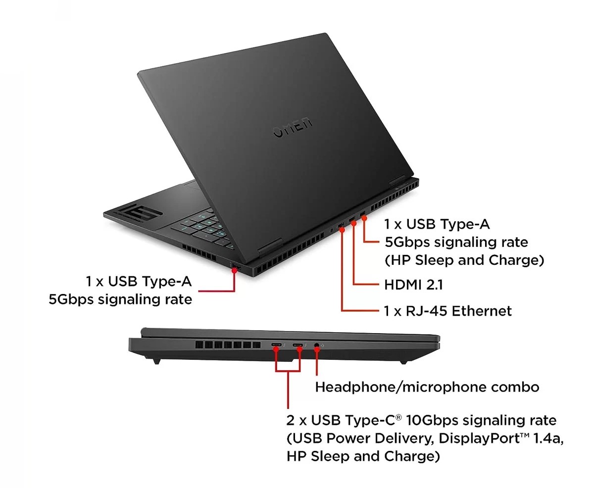 Omen 16 مجموعهای کامل از پورتها را ارائه میدهد: