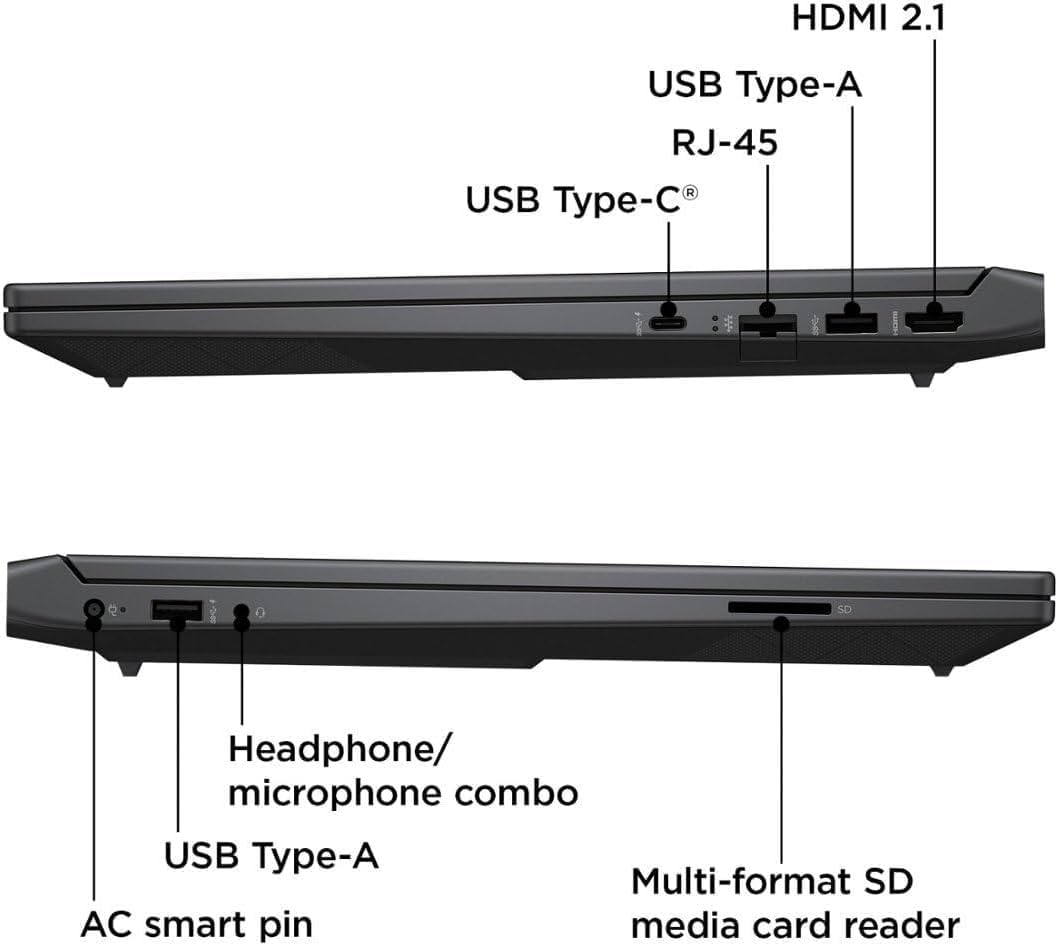 🌀 پورت USB-C (High Speed): پورت چندمنظوره با سرعت ۵ گیگابیت که از DisplayPort 1.4 و HP Sleep and Charge (شارژ موبایل حتی در زمان خاموش بودن لپتاپ) پشتیبانی میکند.
