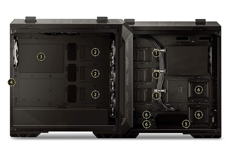 بدنه ی بسیار مستحکم و قدرتمند، دارای ظاهری جذاب و کاریزماتیک، سیمای ظاهری مناسب با ائتلاف تاف گیمینگ ایسوس، دارای پنل شیشه ای، پشتیبانی از نورپردازی RGB، دارای ۴ فن به صورت پیش فرض، پشتیبانی از انواع رادیاتور ها تا طول ۳۶ سانتیمتر، امکان نصب فن های اضافی در دو طرف رادیاتور ها به صورت Pull-Push در سقف و فرانت پنل، دارای کمربند برای بلند کردن کیس، سطح بدنه ضد لک، رنگ آمیزی ماد شده، مدیریت کابل کشی بسیار راحت، فضای استاندارد برای جایگاه ها