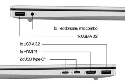 | Ports | 🔗 1x USB-C® 10Gbps (PD/DP), 1x USB-C® 10Gbps, 2x USB-A 5Gbps, 1x HDMI 2.1, 1x Audio Jack |
