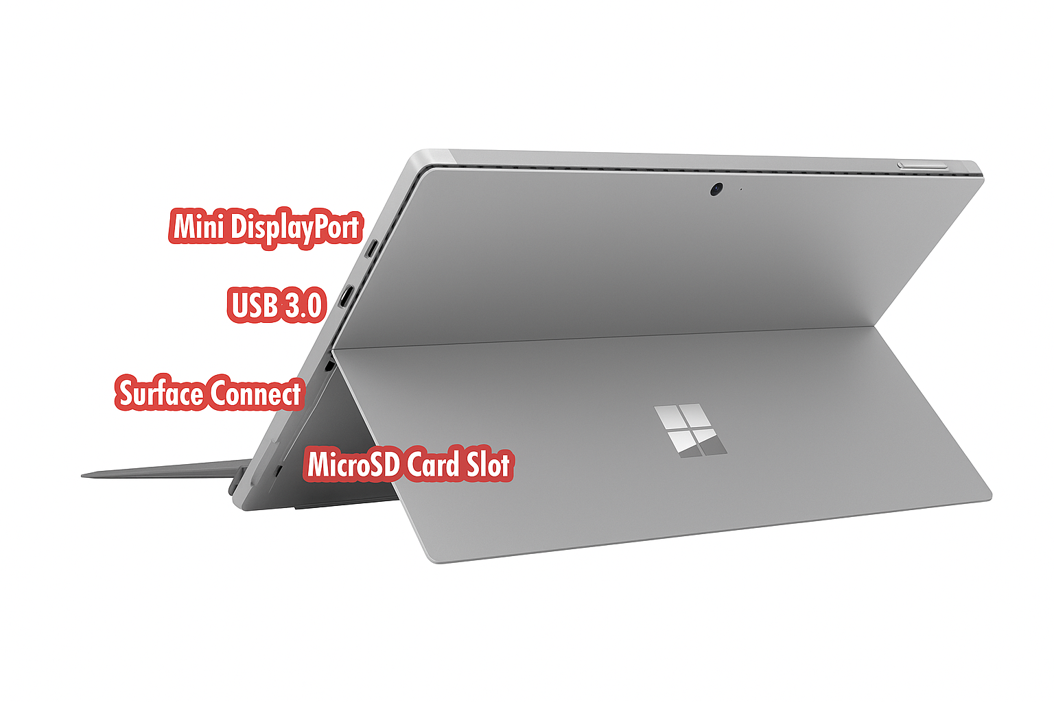 | 🔌 | پورتها | یک پورت USB-A 3.0، یک پورت Mini DisplayPort، پورت سرفیس کانکت، کارتخوان MicroSD، جک صدا |