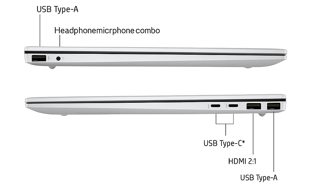 | Ports | 🔗 1x USB-C 10Gbps (PD/DP), 1x USB-C 5Gbps, 2x USB-A 5Gbps, 1x HDMI 2.1, 1x Audio Jack |