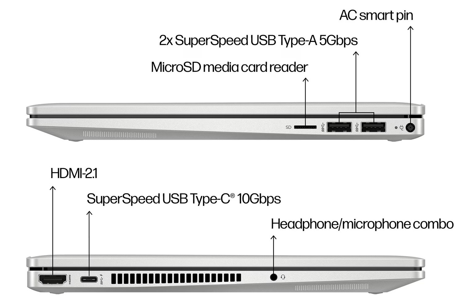 | Ports | 🔗 1x USB-C® (PD/DP), 2x USB-A 5Gbps, 1x HDMI 2.1, 1x MicroSD Reader, 1x Audio Jack |